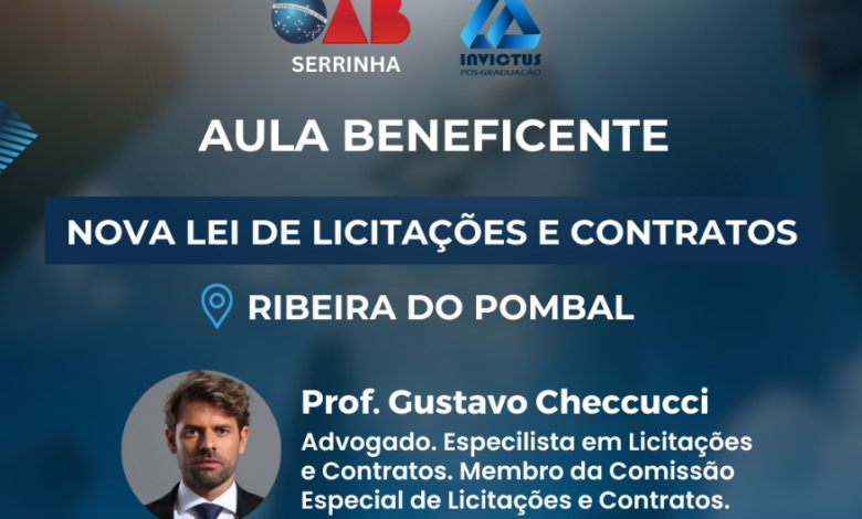 A OAB SERRINHA, a Invictus e a Câmara Municipal de Ribeira do Pombal se uniram para apresentar uma incrível oportunidade de aprendizado: uma Aula Beneficente sobre a Nova Lei de Licitações e Contratos.