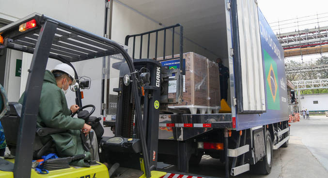No sábado, 1,5 milhões de fármacos da Pfizer desembarcaram no Brasil e a previsão para este domingo (5) é receber mais 2 milhões de doses.