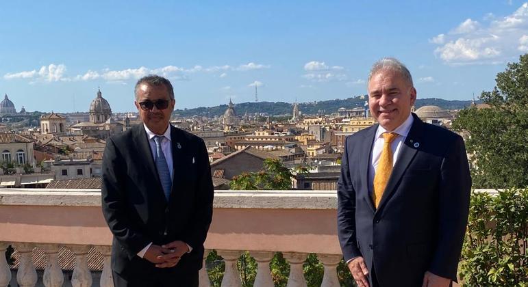 O ministro da Saúde Marcelo Queiroga se reuniu, neste domingo (5), com o diretor-geral da OMS (Organização Mundial da Saúde), Tedros Adhanom, em Roma, na Itália, após a abertura da reunião com os ministros da Saúde do G20. Segundo a pasta, Tedros parabenizou o ministro pela campanha de vacinação contra a covid-19 no Brasil.