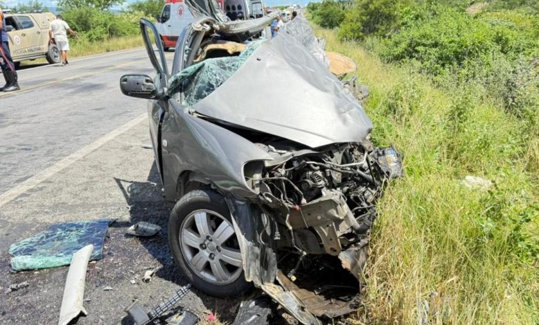 Duas pessoas morrem em colisão entre carro e carreta na BR-242, na Bahia