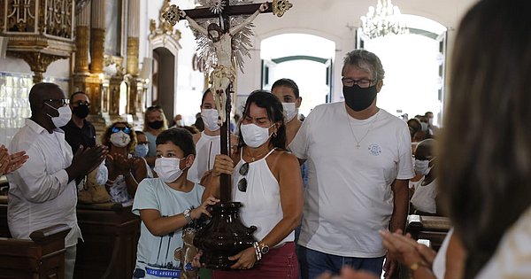 | Familiares conduziram a imagem do Senhor do Bonfim (Foto: Marina Silva/CORREIO) |
