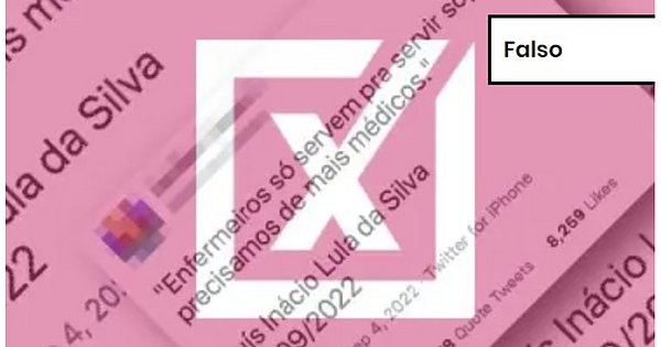 É falso que o ex-presidente Luiz Inácio Lula da Silva (PT) tenha dito que ‘‘enfermeiros só servem para servir sopa, precisamos de mais médicos”. A peça de desinformação foi compartilhada pelo candidato Coronel Tadeu (PL-SP), em um vídeo publicado em um canal próprio no YouTube. Segundo Tadeu, Lula teria dito a frase em 4 de setembro, mesmo dia em que uma decisão do Supremo Tribunal Federal (STF) suspendeu o piso nacional da enfermagem. Nessa mesma data, o presidenciável petista participou de um ato de campanha no ABC Paulista com trabalhadoras domésticas. O encontro foi transmitido ao vivo pela internet e não há qualquer menção ao assunto pelo presidenciável. A informação falsa também constava em um tuíte publicado em conta de apoio a outro candidato a deputado federal e que, posteriormente, foi excluído.