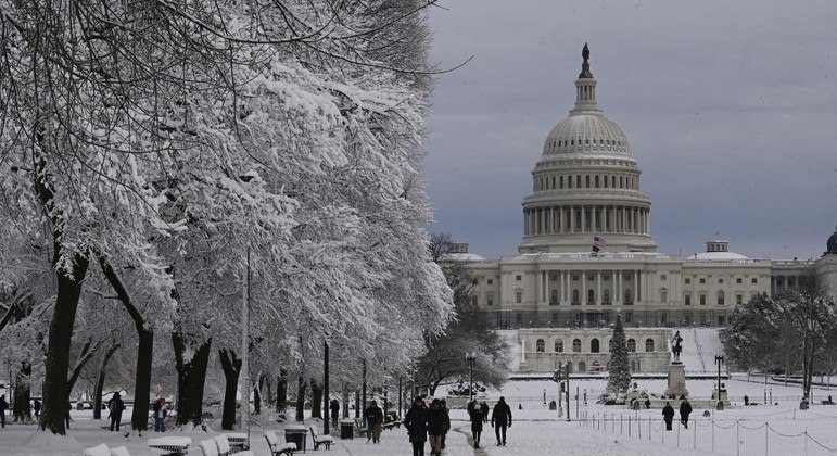 O Senado dos EUA retornou às atividades nesta segunda-feira após a pausa de fim de ano, mas se reuniu apenas para uma breve sessão devido a uma tempestade de neve que forçou o local de testes do Capitólio a fechar mais cedo.