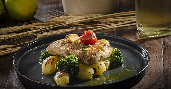 | Panceta com musseline de inhame no cardápio executivo |