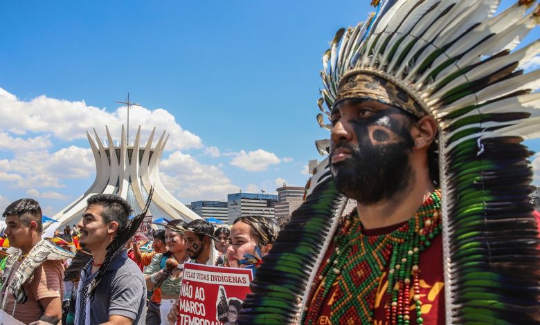 - Povos indígenas marcham em Brasília contra marco temporal .