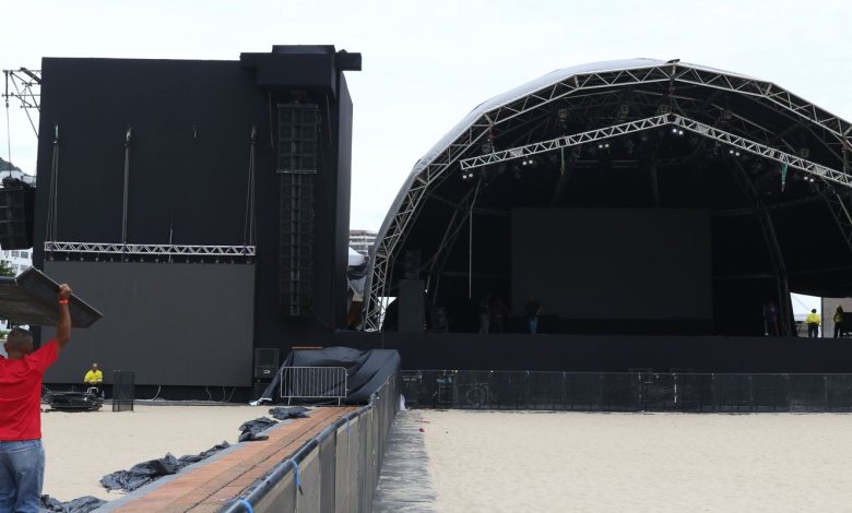 O palco principal foi montado na areia, em frente ao hotel Copacabana Palace, de onde os artistas chegarão, através de uma passarela provisória especialmente construída sobre a Avenida Atlântica. Além de Zeca Pagodinho, está prevista a apresentação de Iza, Alexandre Pires e bateria da Grande Rio. Em outro palco, em frente à Rua Santa Clara, as atrações serão: Mart’nália, Bala Desejo, Gilsons, Preta Gil, bateria da Beija-Flor e DJs.