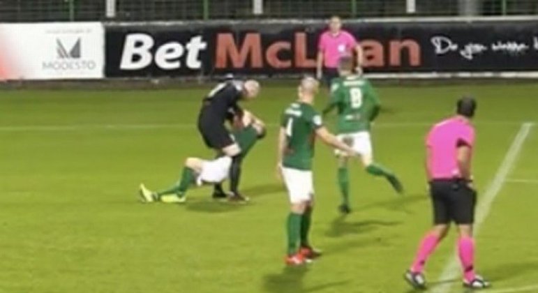Cenas lamentáveis marcaram o jogo entre Glentoran e Coleraine, times da primeira divisão do Campeonato Norte-Irlandês. O goleiro Aaron McCarey, do Glentoran, foi expulso no último sábado depois de agredir o companheiro de time que falhou e viu o adversário empatar a partida